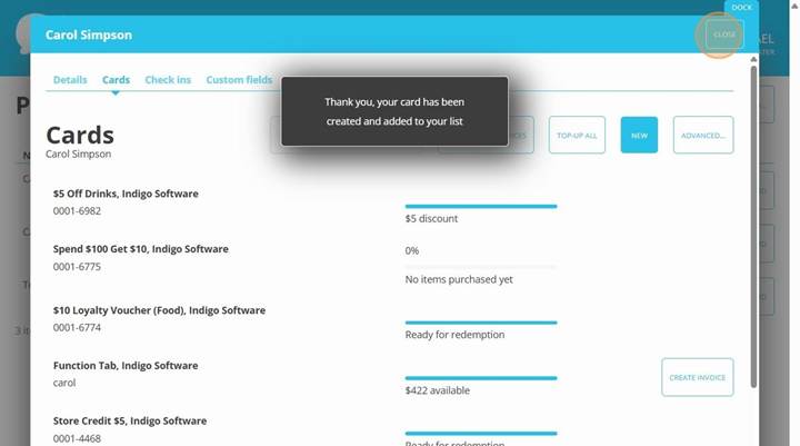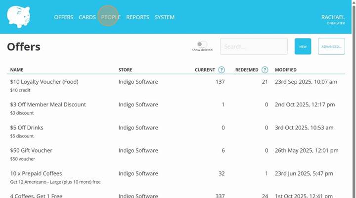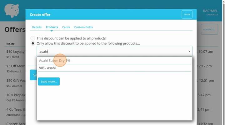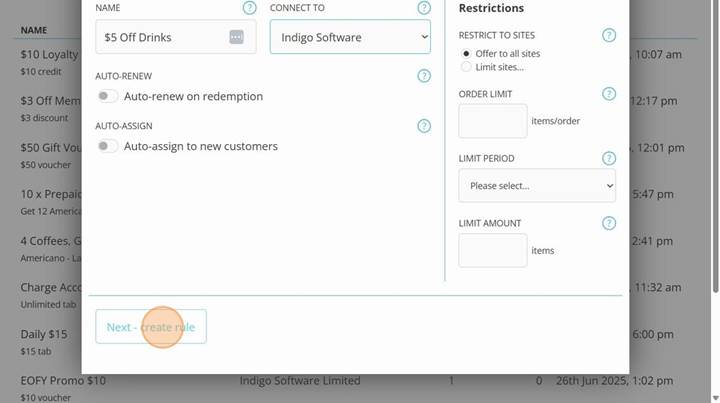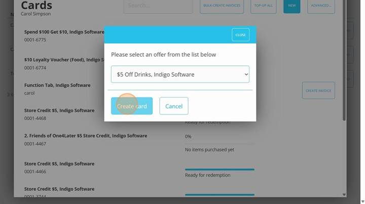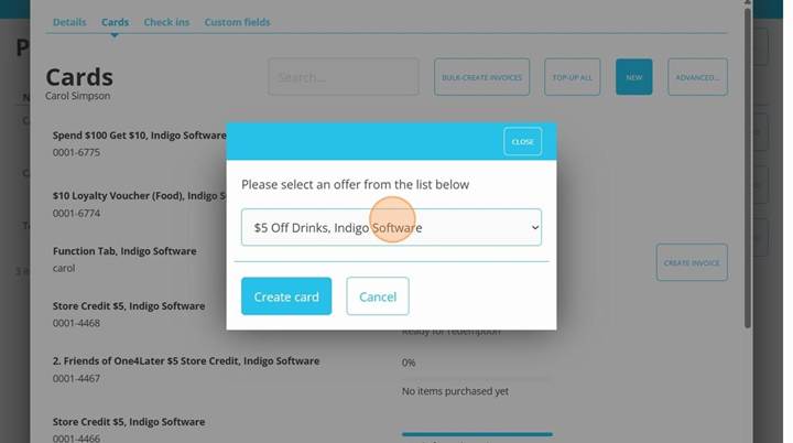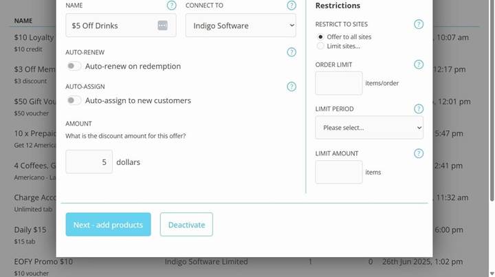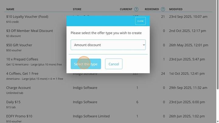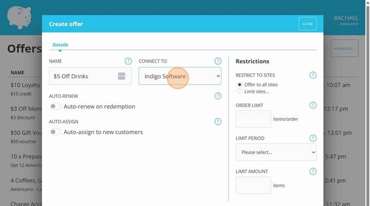 - Select the new offer. In our example this is "$5 Off Drinks, Indigo Software" option.