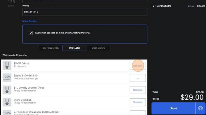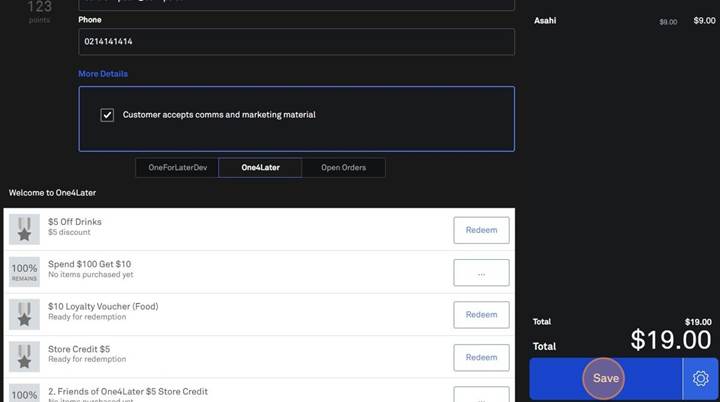 - Click "Save" to exit from the customer screen and complete the sale as normal.